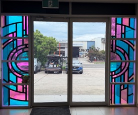 To bring vibrancy and character to the site, Brenden and Mark incorporated Aslan Dichroic Film SE 70, creating a mesmerising stained glass window effect. This specialty film radiates dynamic color shifts that catch the sunlight beautifully, making the space truly stand out.