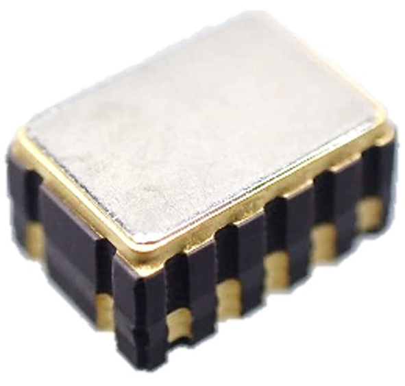 The oven is bonded inside the OCXO package with an adhesive that has low thermal conductivity to improve internal insulation. This limits the loss of heat from the heater IC and keeps power consumption low.